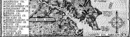 1667 MAP CREATED BY JAMES E. MOSS, AUTHOR OF PROVIDENCE: LOST TOWN AT SEVERN, BASED ON LAND RECORDS FROM 1660 - 1667